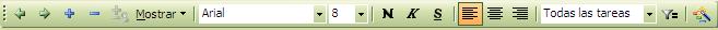 La barra de herramientas muestra los botones que permiten utilizar las diferentes opciones de Microsoft Project, de una manera más accesible. Por defecto se muestran la Barra de Formato y la Barra Estándar.